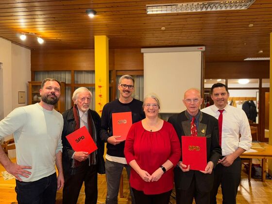 Ein besonders emotionaler Moment war die Ehrung dreier Jubilare, die zusammen auf beeindruckende 100 Jahre Mitgliedschaft in der SPD zurückblicken können: Dagobert Krüger mit 50 Jahren, Klaus Fehrenbach mit 40 Jahren und Jonas Muth mit 10 Jahren. Der Abend endete mit vielen persönlichen Gesprächen, neuen Ideen und einem gemeinsamen Gefühl von Zusammenhalt und Aufbruch. Vorsitzender Frieder Haid fasste abschließend zusammen: „Ein rundum gelungener Abend.“